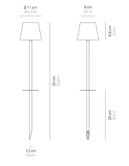Lampada Ricaricabile Poldina Picchetto Ricaricabile Colore Corten di Zafferano